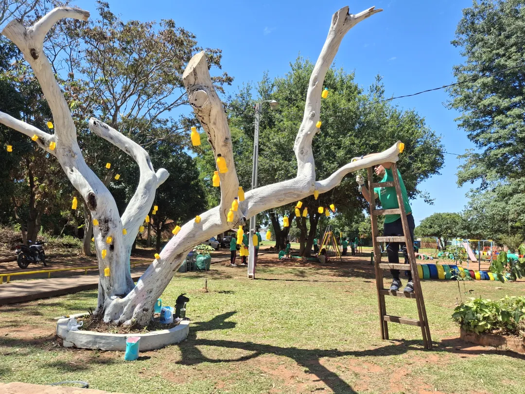 Colaboradores de la firma, alumnos del Colegio Inmaculada Concepción, estudiantes de la Facultad de Arquitectura y Diseño de la UNA y vecinos del barrio, estuvieron involucrados en la tarea de limpieza, jardinería, mantenimiento y pintura de los juegos y de los diferentes elementos de la plaza.