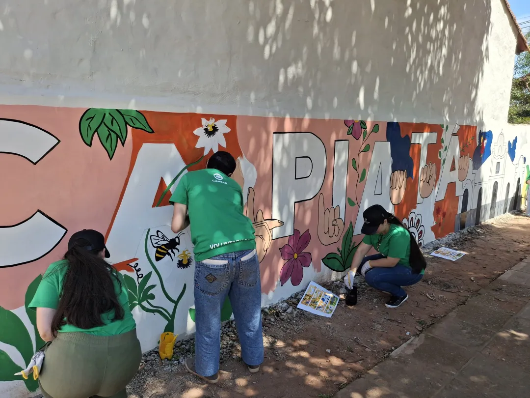 Los estudiantes de la Facultad de Arquitectura se encargaron del diseño y pintura de un mural temático sobre la cultura capiateña.