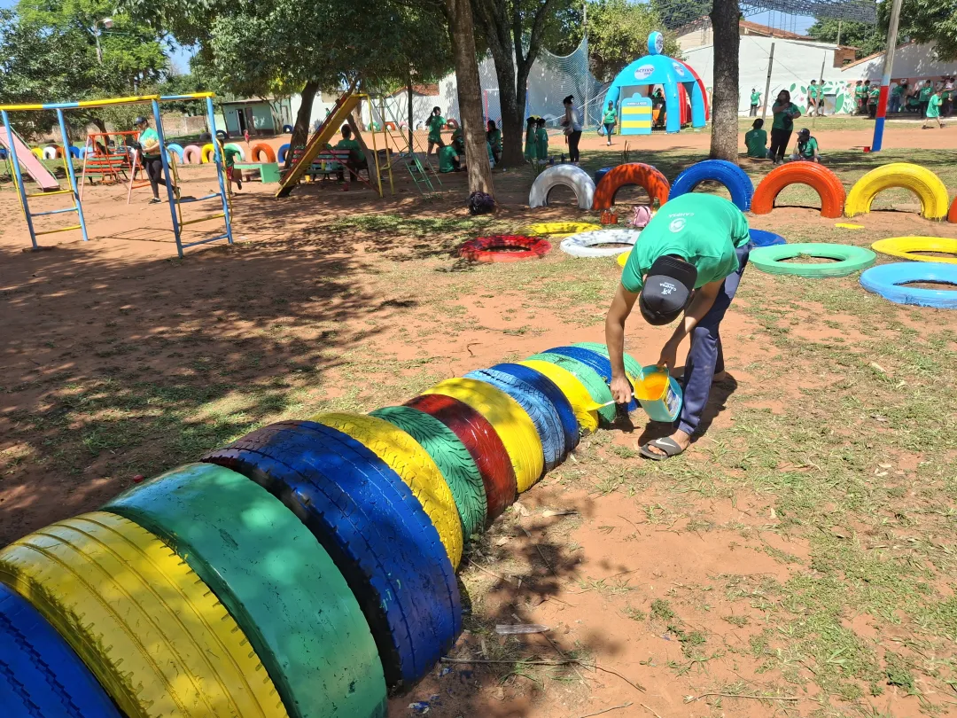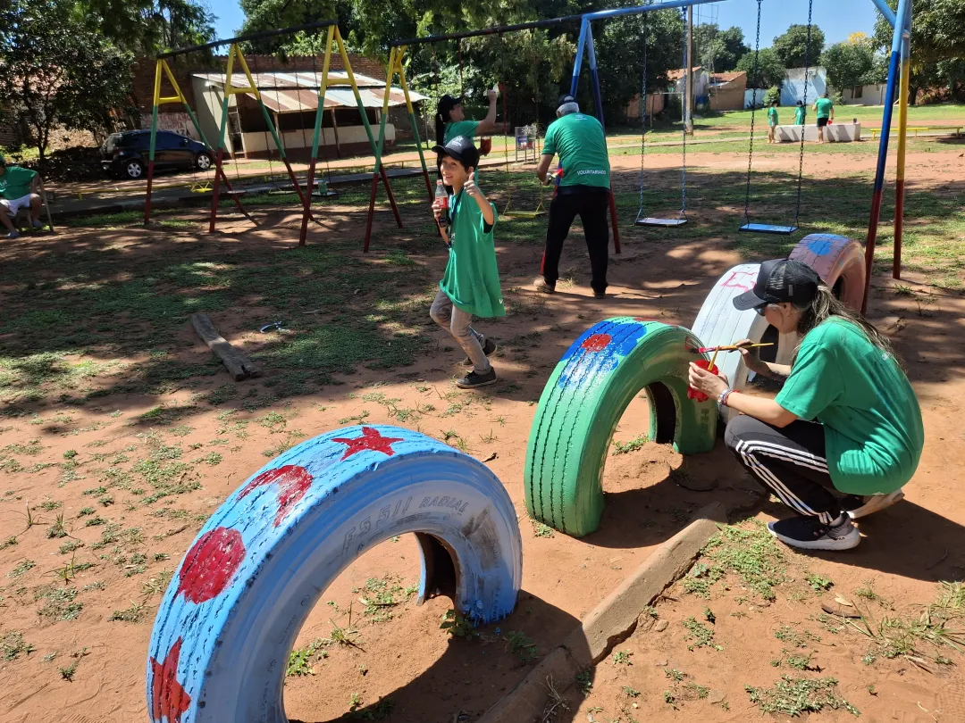 Colaboradores de la firma, alumnos del Colegio Inmaculada Concepción, estudiantes de la Facultad de Arquitectura y Diseño de la UNA y vecinos del barrio, estuvieron involucrados en la tarea de limpieza, jardinería, mantenimiento y pintura de los juegos y de los diferentes elementos de la plaza.