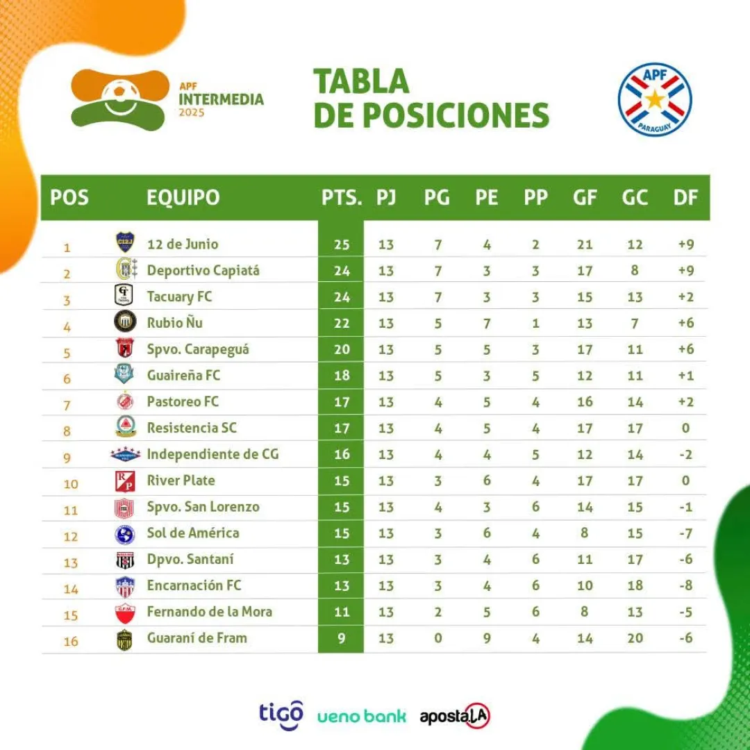 Con este triunfo Capiatá suma 24 unidades y se coloca a un punto del líder 12 de Junio de Villa Hayes que está con 25 puntos.